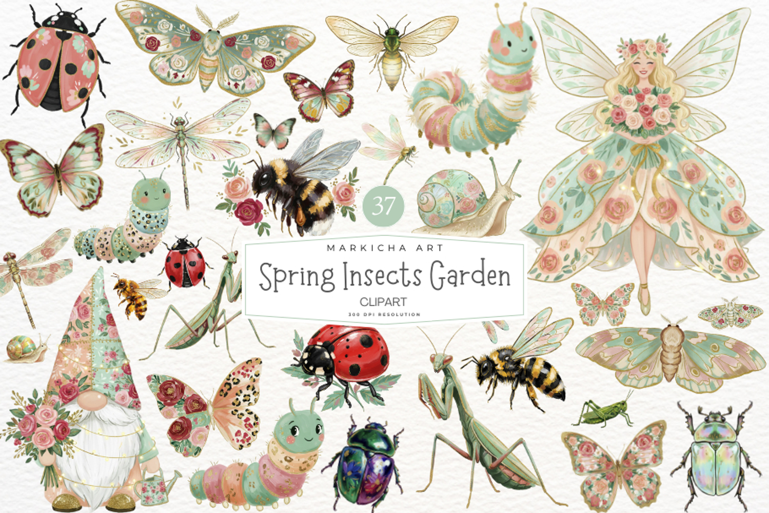 Spring Insects Garden Clipart example image 1
