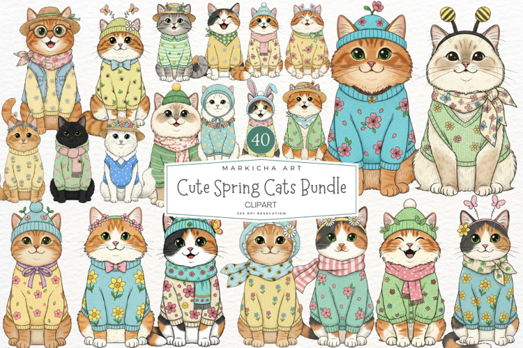 Spring Cats Clipart