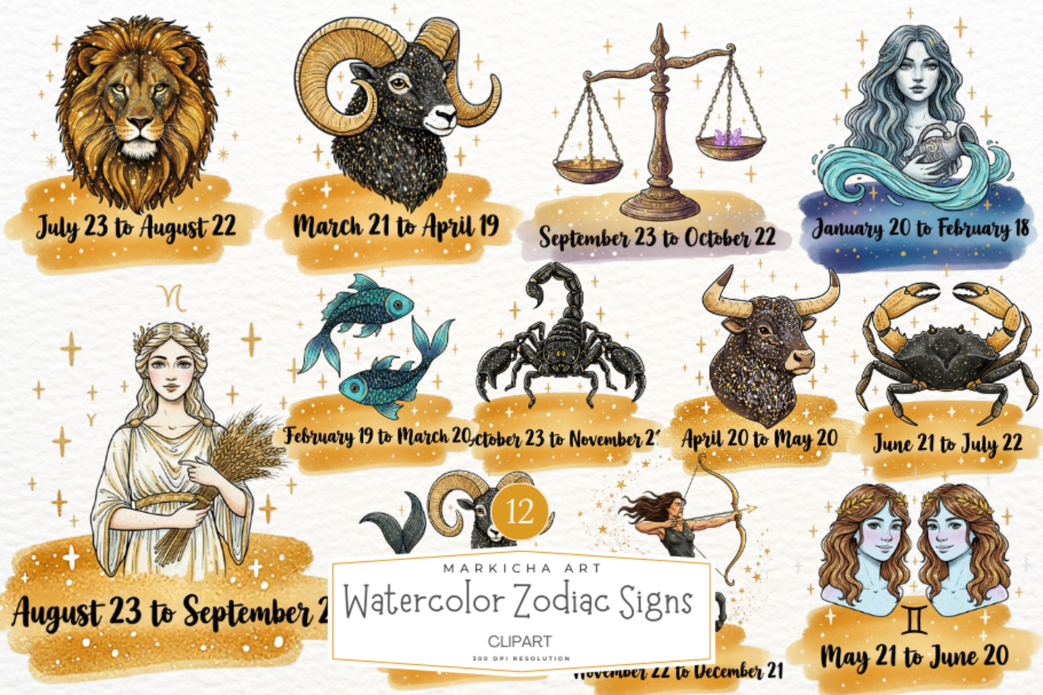 Similar Design Products to Watercolor Zodiac Signs Clipart