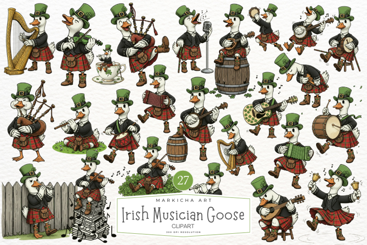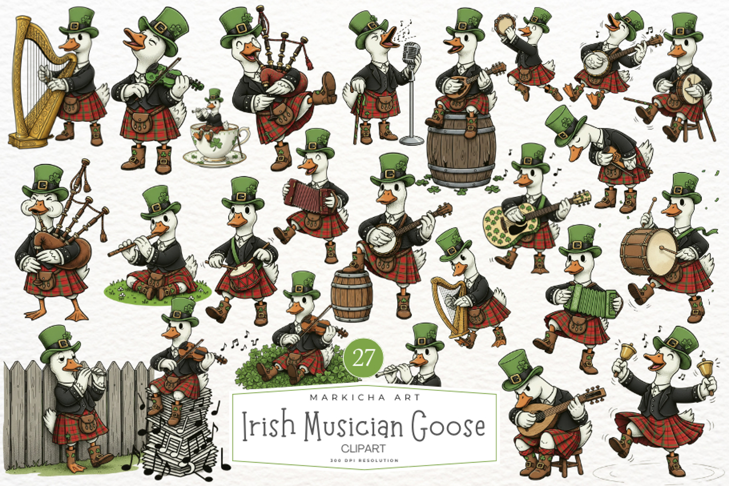 Funny Goose Clipart Whimsical Goose Art St Patricks Goose Clipart Irish Goose Illustration Shamrock Goose Png Hand Drawn Goose Png Aesthetic Goose Clipart Printable Goose Clipart Musician Goose Png Festive Goose Clipart