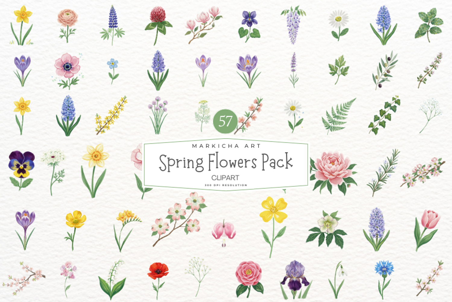 Similar Design Products to Watercolor Spring Flowers Clipart