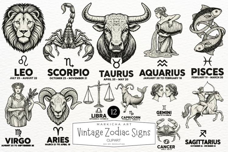 Vintage Zodiac Signs Clipart