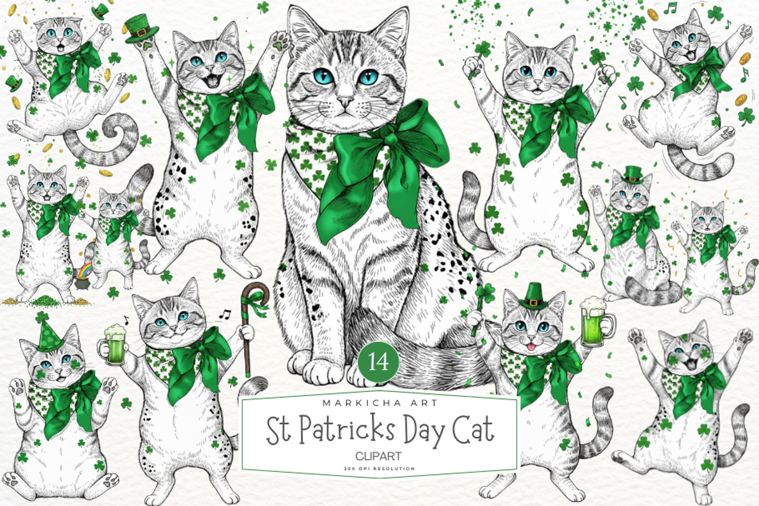 Cat With Hat Clipart Lucky Cat Illustration Shamrock Cat Clipart St Patricks Cat Clipart Irish Cat Png Green Cat Png Leprechaun Cat Illustration Festive Cat Clipart Png Irish Pet Illustration Shamrock Animal Png