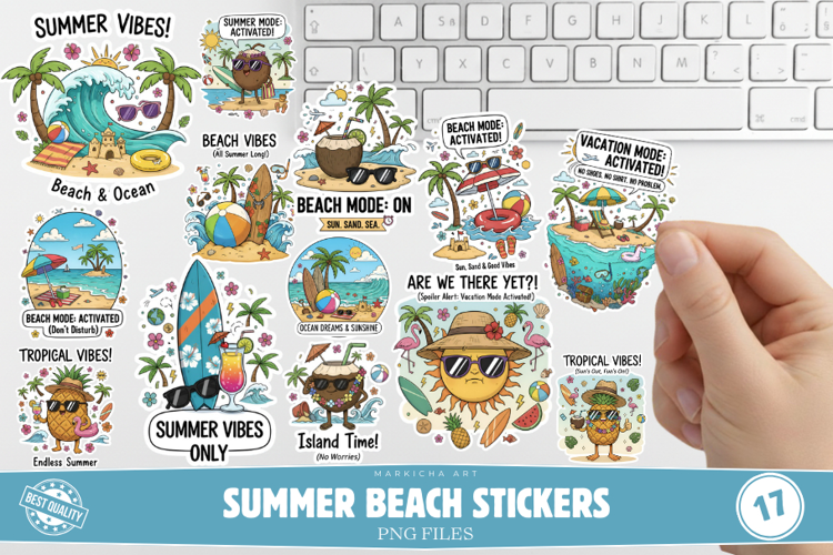 Ocean Beach Clipart Summer Vacation Stickers Printable Beach Stickers Summer Beach Stickers Beach Stickers Png Sand And Sea Png Pastel Beach Png Seaside Summer Stickers Coastal Decor Pack Cute Beach Bundle