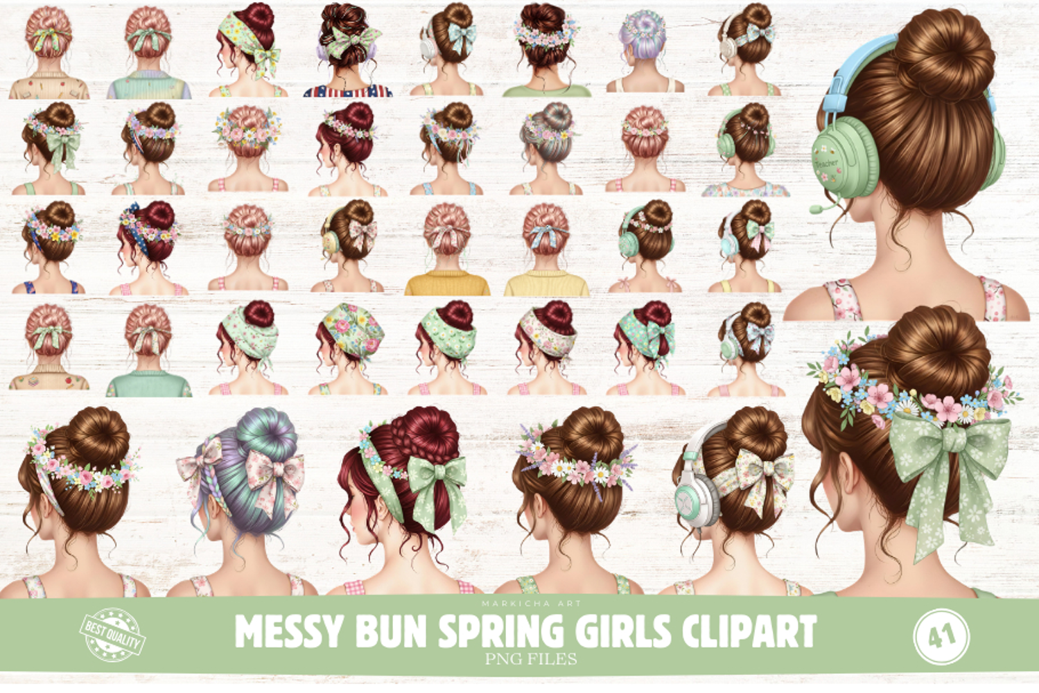 Similar Design Products to Messy Bun Spring Girls Clipart