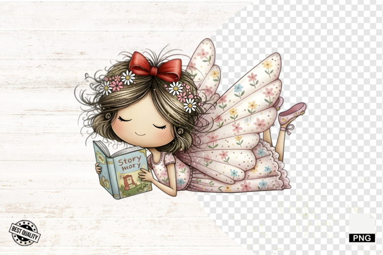 Spring Fairy Reading Png Sublimation - Spring Clipart example image 1