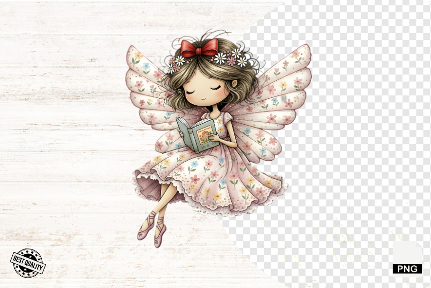 Spring Fairy Reading Png Sublimation - Spring Clipart example image 1