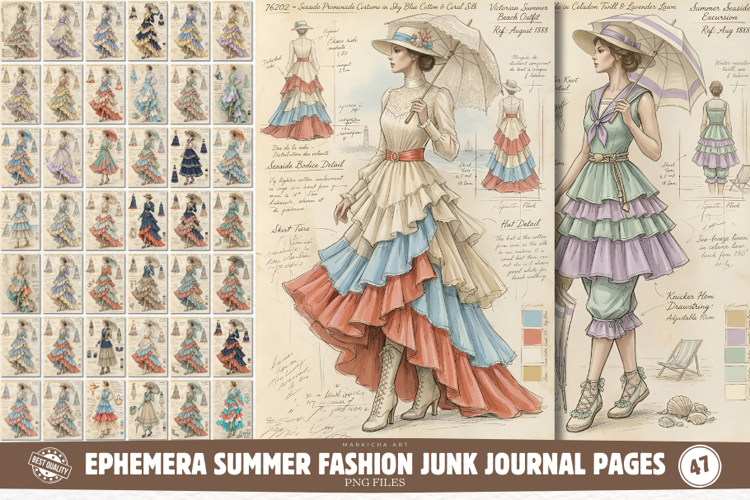 Similar Design Products to Ephemera Summer Fashion Junk Journal Pages Bundle