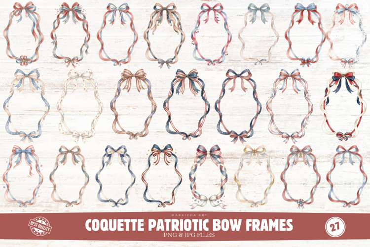 Coquette Patriotic Ribbon Bow Frames Clipart example image 1