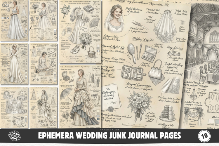 Similar Design Products to Ephemera Wedding Junk Journal Pages - Junk Journal Pack