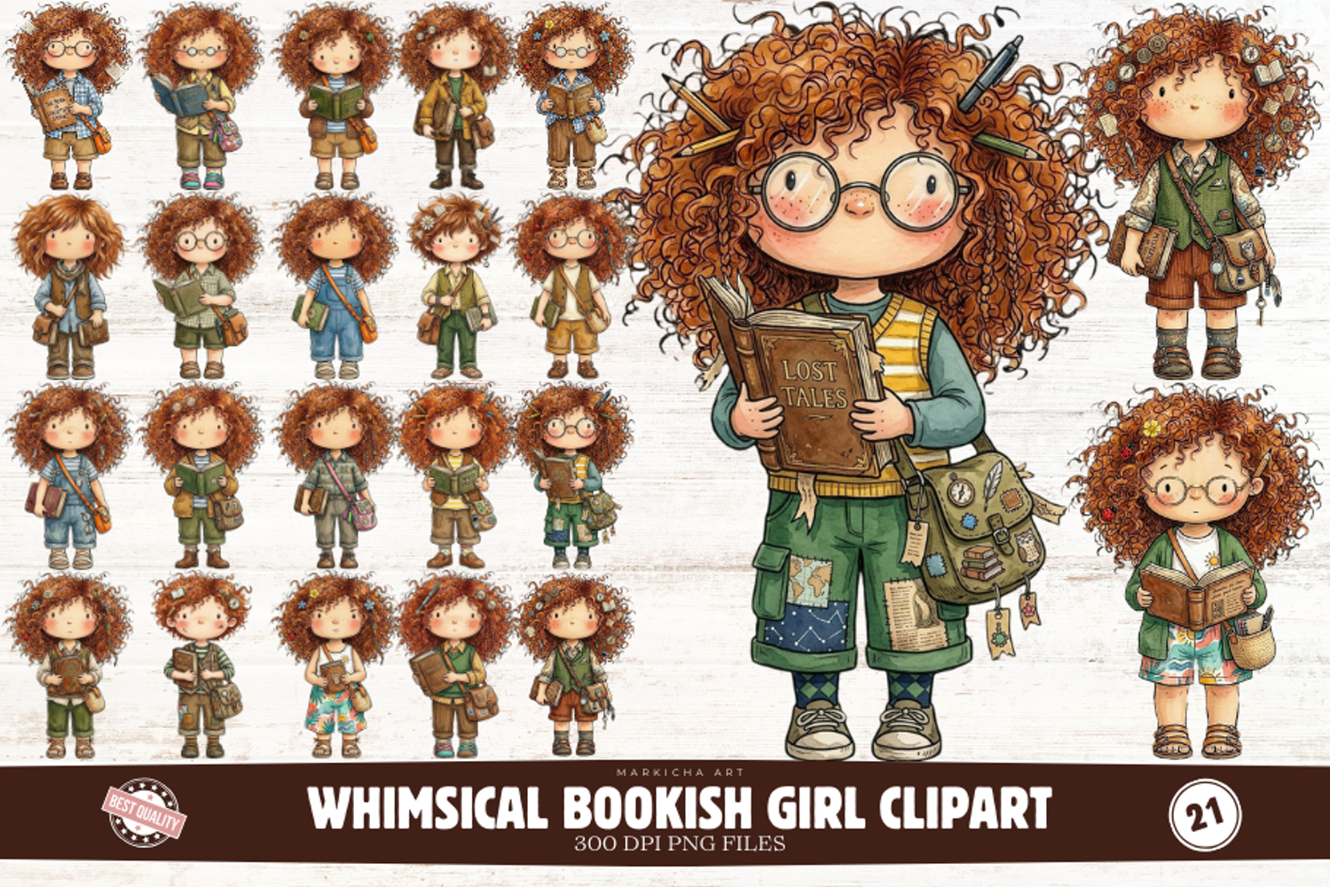 Whimsical Bookish Girl Clipart