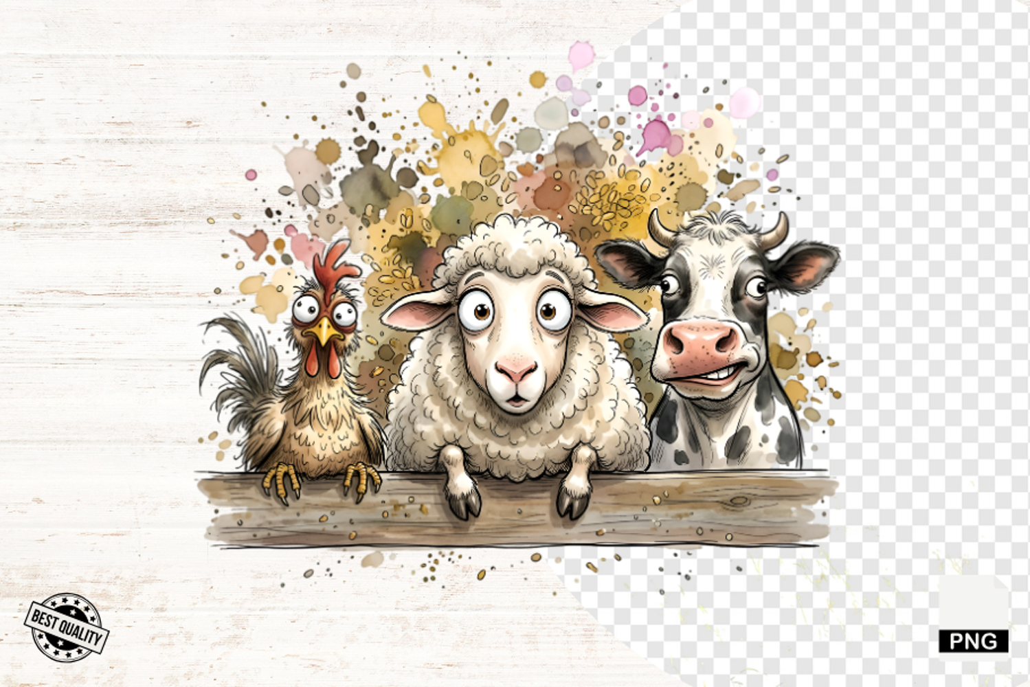 Similar Design Products to Whimsical Peeking Farm Animals PNG