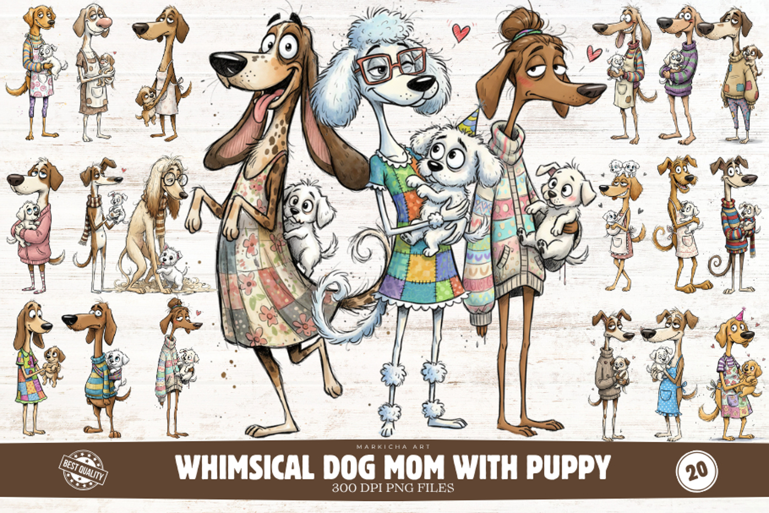 Whimsical Dog Mom With Puppy Clipart
