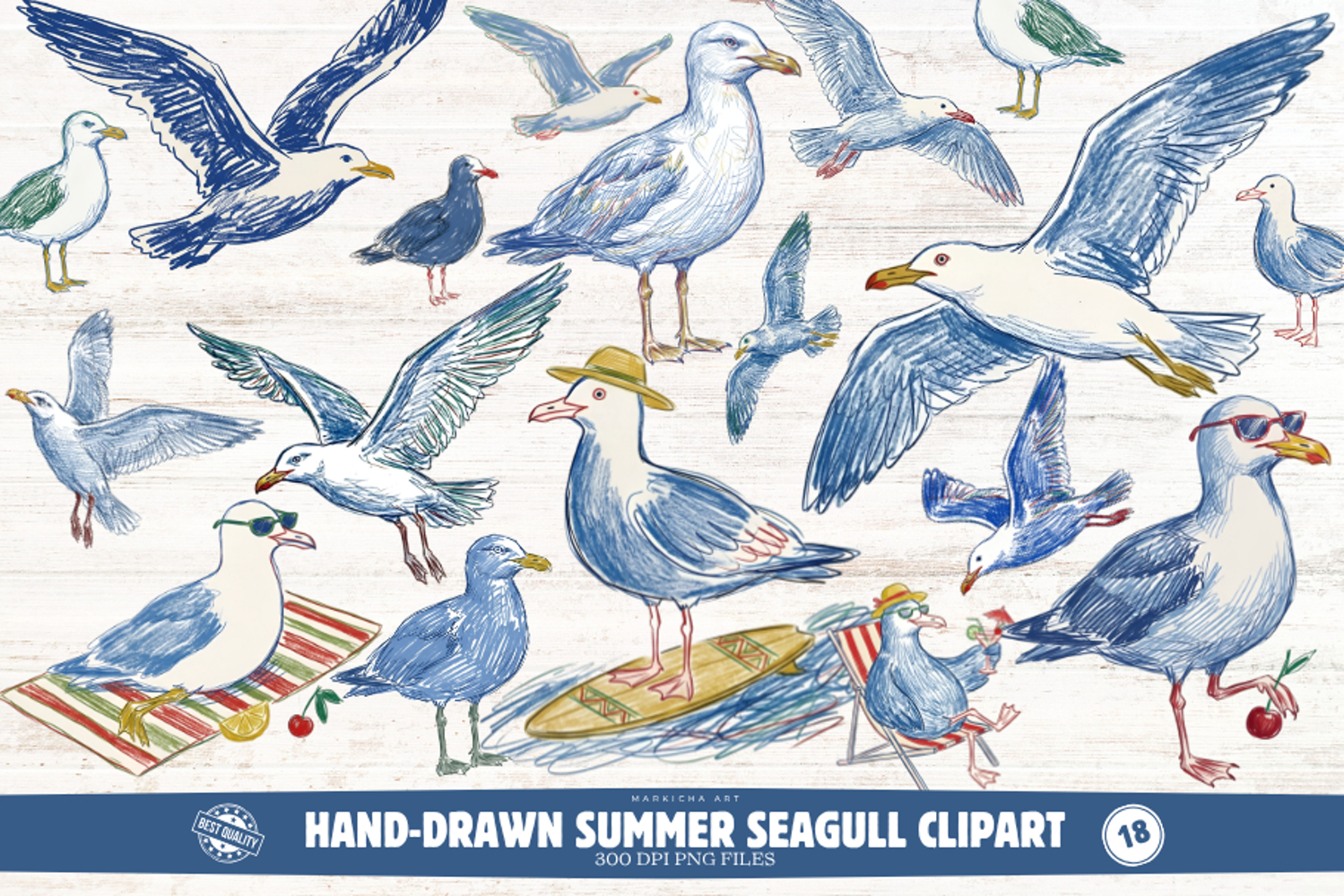 Similar Design Products to Hand-Drawn Summer Seagull Clipart