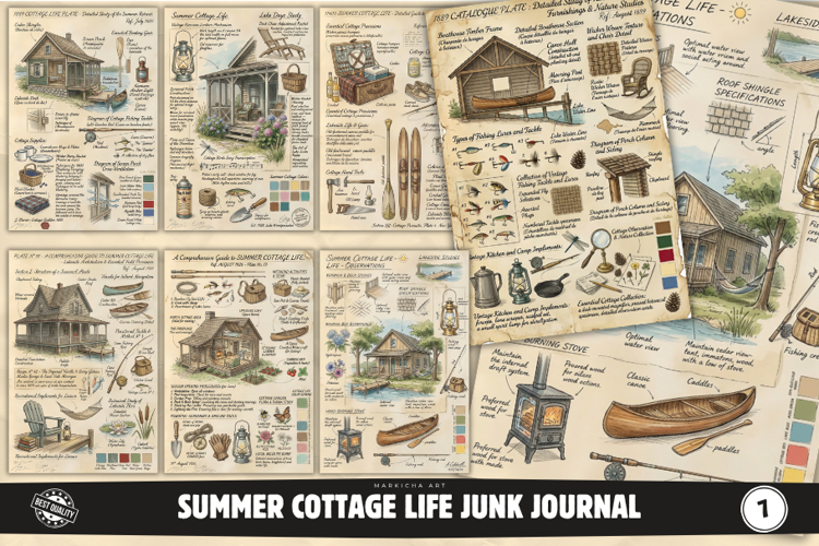 Similar Design Products to Summer Cottage Life Junk Journal Pages
