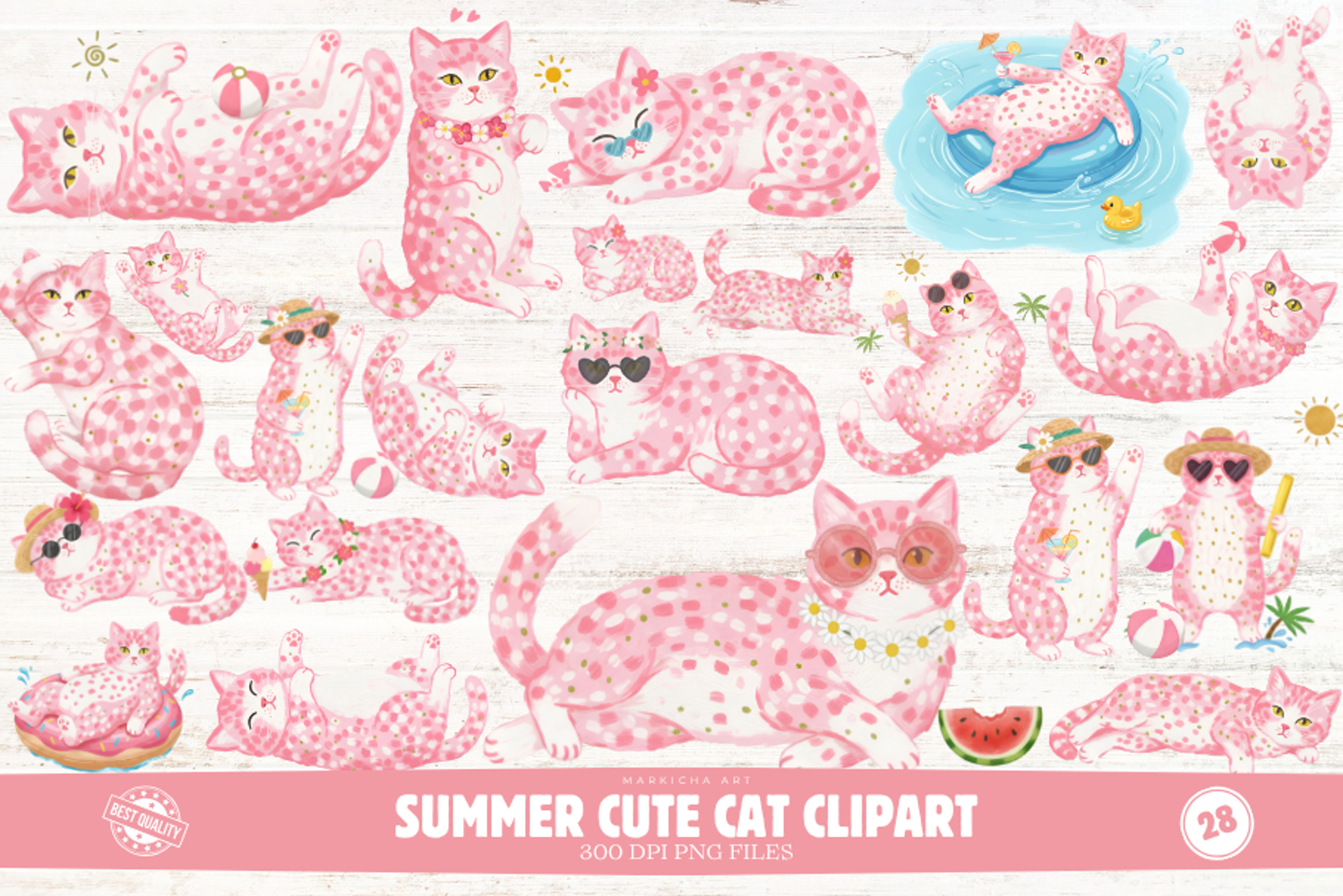 Cute Kitten Clipart Cat Digital Clipart Cute Cat Png Summer Cat Clipart Cat Cartoon Illustration Summer Animal Png Playful Cat Art Summer Pet Png Kitten Summer Illustration Cat Beach Vibes