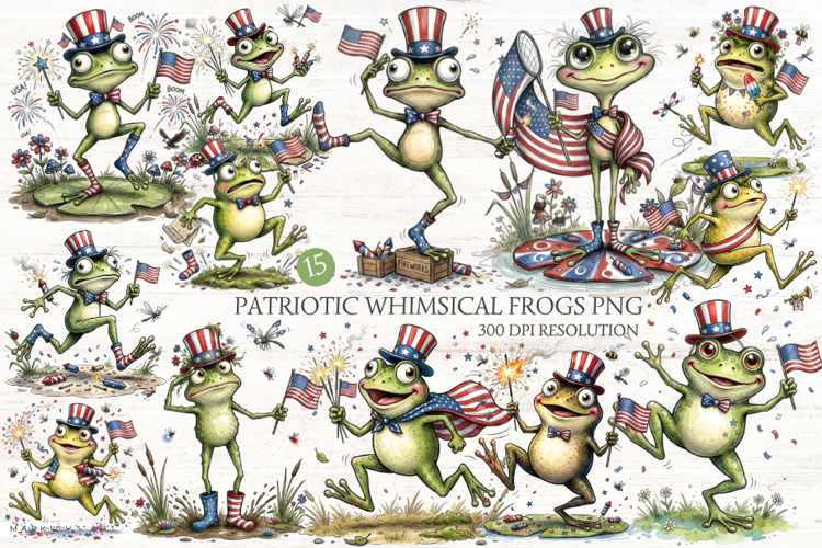 Similar Design Products to Patriotic Whimsical Frogs PNG Clipart