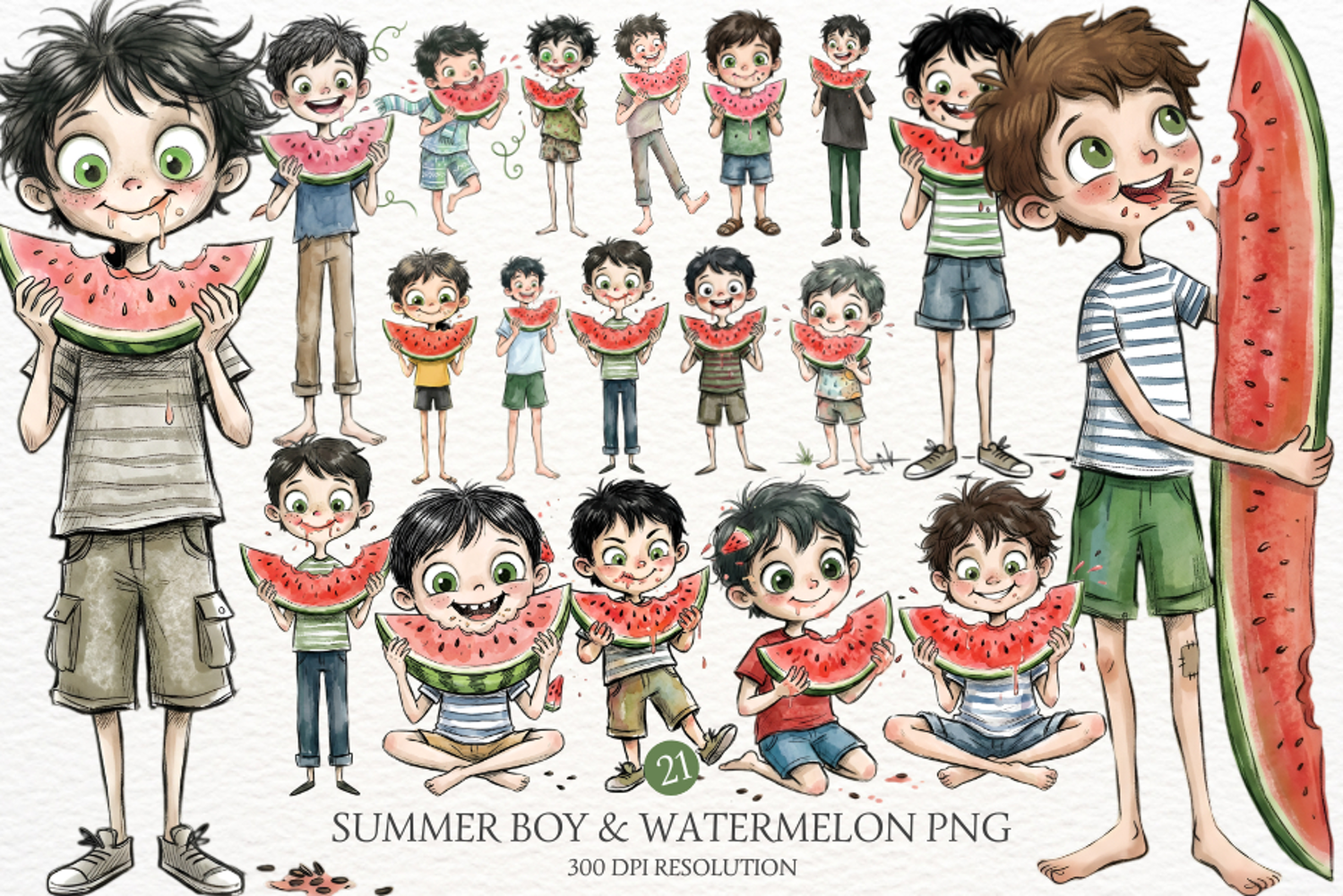 Similar Design Products to Whimsical Summer Boy & Watermelon Clipart
