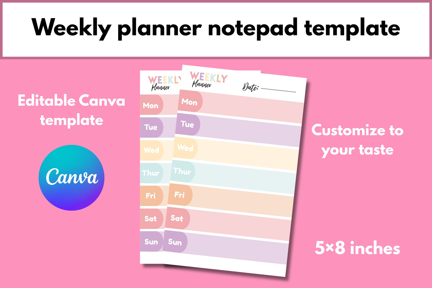 Editable Weekly Planner Canva Template - 5x8 Aesthetic Weekly Notepad Printable - Pastel Weekly Organizer - Instant Download Digital Planner Insert
