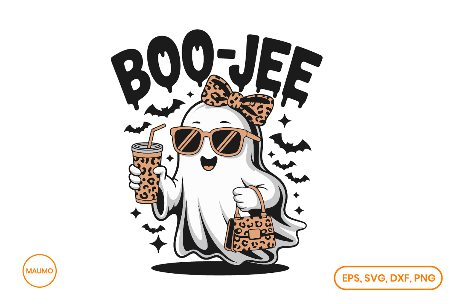 Girly Scary Ghost Leopard Print 31st October Funny Halloween