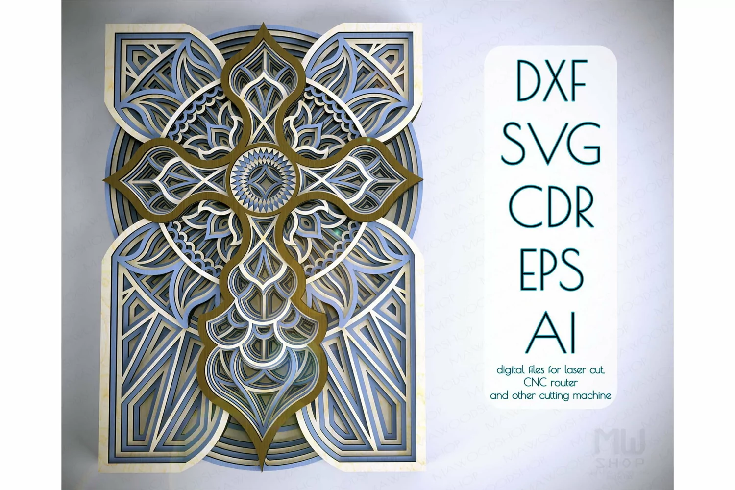 Mandala Svg Svg File For Cricut Cross Mandala Layer Mandala 3d Cross Mandala Svg Layered Cross Layer Cross Cross Dxf Layer Cricut Project Mandala Glowforge Cross Svg