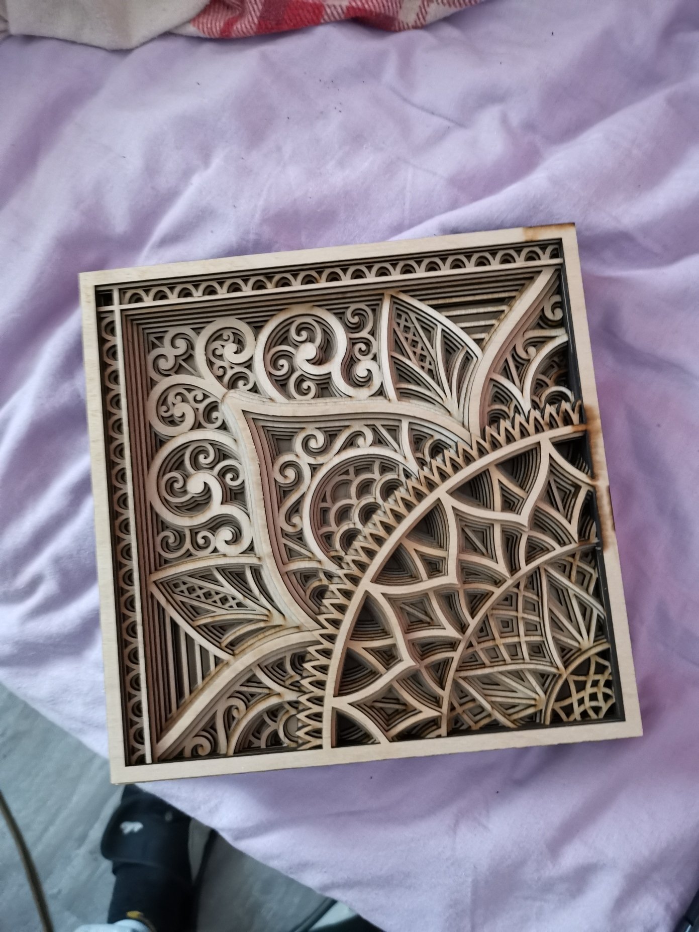 Multilayer designs consist of several layers that need to be glued one on top of the other. You can use cardstock paper, cardboard, plywood, MDF, plexiglass, metal for cutting (please check with the machine manufacturer which material is best for your machine).