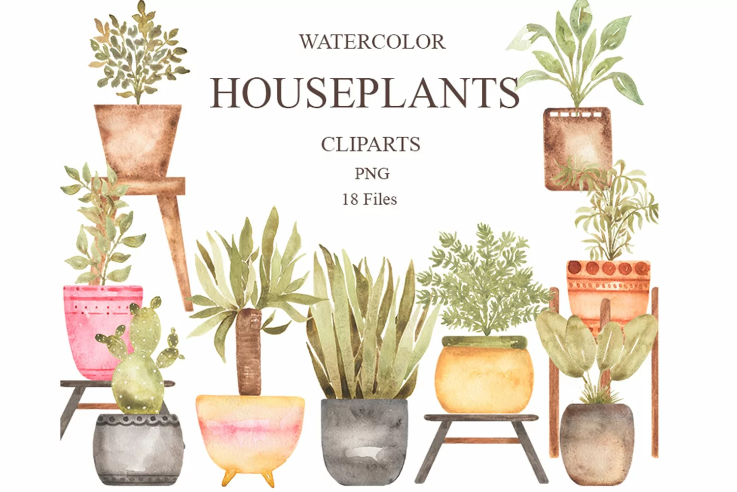 Botanical Floral Clipart Gardening Planner Stickers Room Decor Indoor Plants Potted Plants Plants Clipart House Plants Watercolor Ilustration