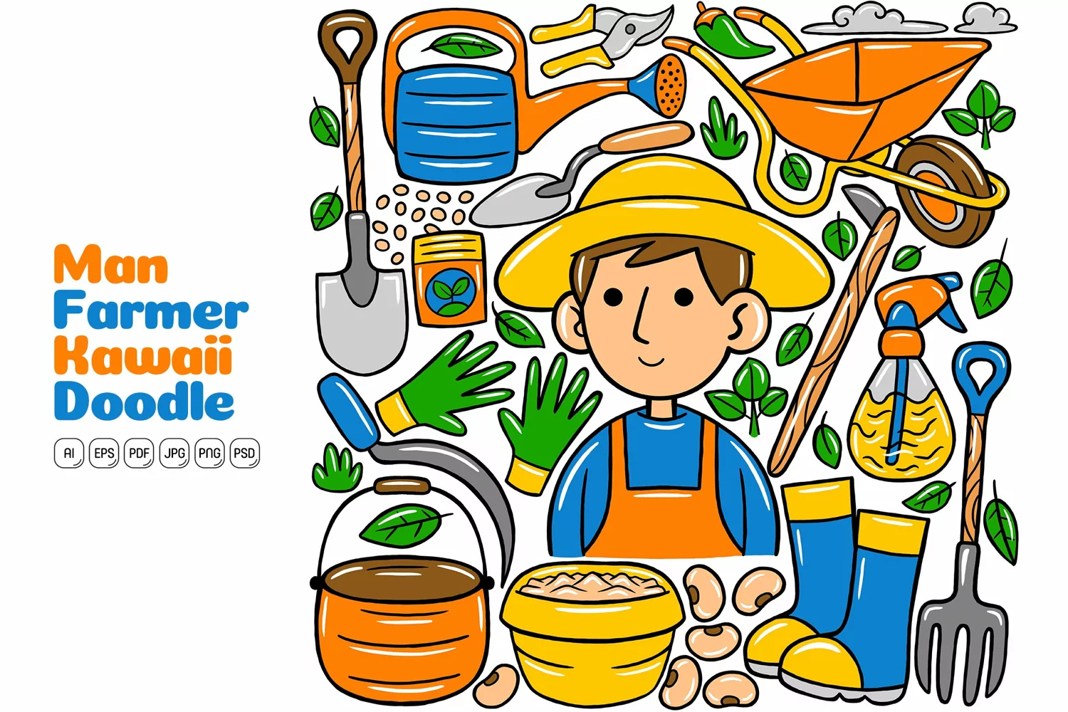 Man Farmer Kawaii Doodle Vector r Illustration example image 1