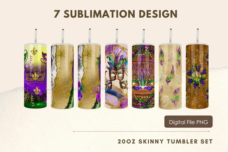 Similar Design Products to 20oz Mardi Gras Feather Mask Glitter Tumbler SublimationC