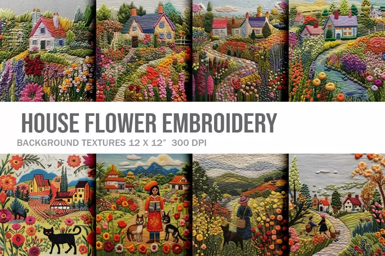 3D House Flower Embroidery Flower View Craft Art Background_ example image 1