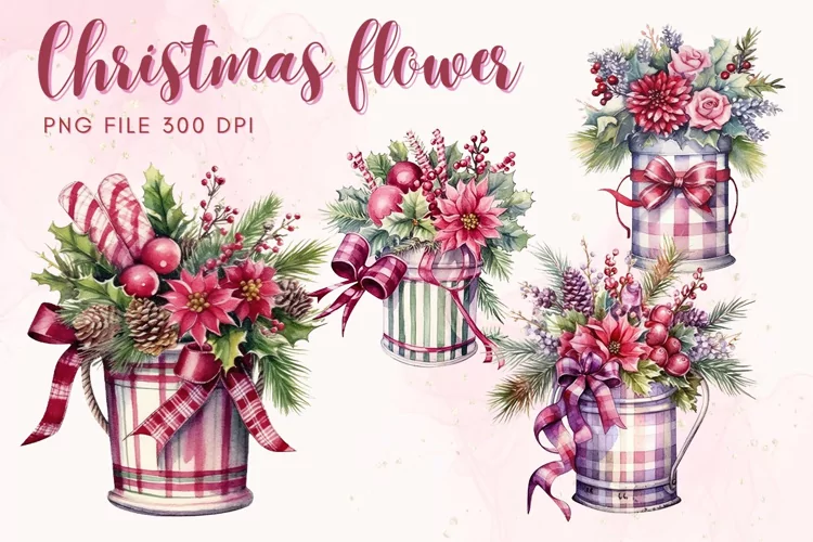 Watercolor Clipart Christmas Clipart Christmas Watercolor Poinsettia Bouquet Christmas Decorate Poinsettia Watercolor Winter Holiday Graphic Clipart Ornament Decorate Christmas Decorate Clipart Poinsettia Christmas Flower
