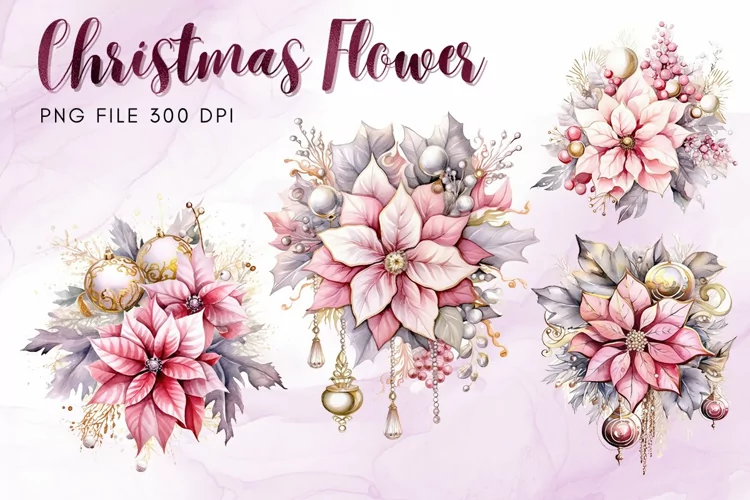 Watercolor Clipart Christmas Clipart Christmas Watercolor Poinsettia Bouquet Christmas Decorate Poinsettia Watercolor Winter Holiday Graphic Clipart Ornament Decorate Christmas Decorate Clipart Poinsettia Christmas Flower