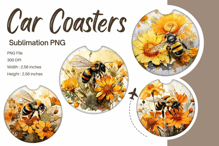 Car Coaster Design Car Coaster Sublimation Car Coaster Template Car Accessories Bee Flower Car Coasters Sublimation Coaster Templates Car Coasters Design Flower Car Coasters Bee Car Accessories