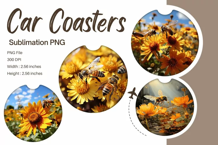 Car Coaster Design Car Coaster Sublimation Car Coaster Template Car Accessories Bee Flower Car Coasters Sublimation Coaster Templates Car Coasters Design Flower Car Coasters Bee Car Accessories