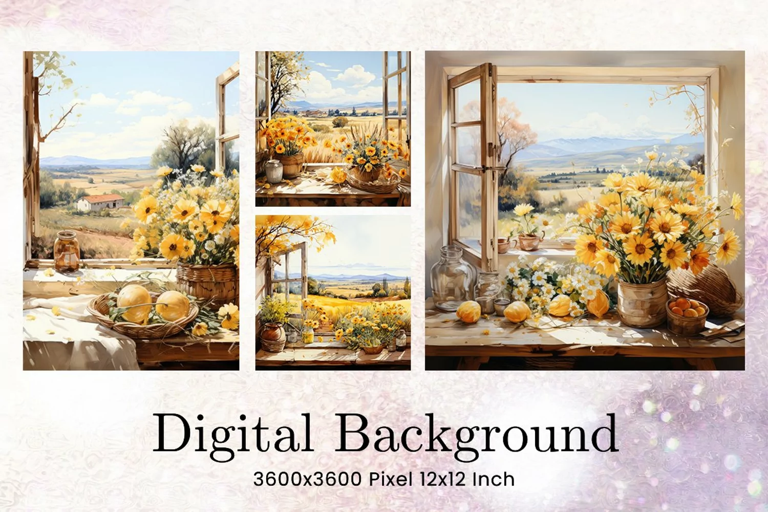 Digital Backdrop Watercolor Wall Art Flower Wall Art Window Flower Background Window Flower Wallpaper Window Flower Wall Art Window Flower Watercolor Window Flower