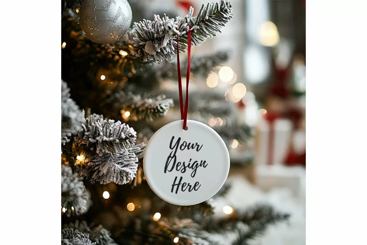 Christmas Ornament Mockup, Round White Ceramic Ornament