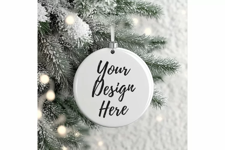 Christmas Ornament Mockup, Round White Ceramic Ornament_10