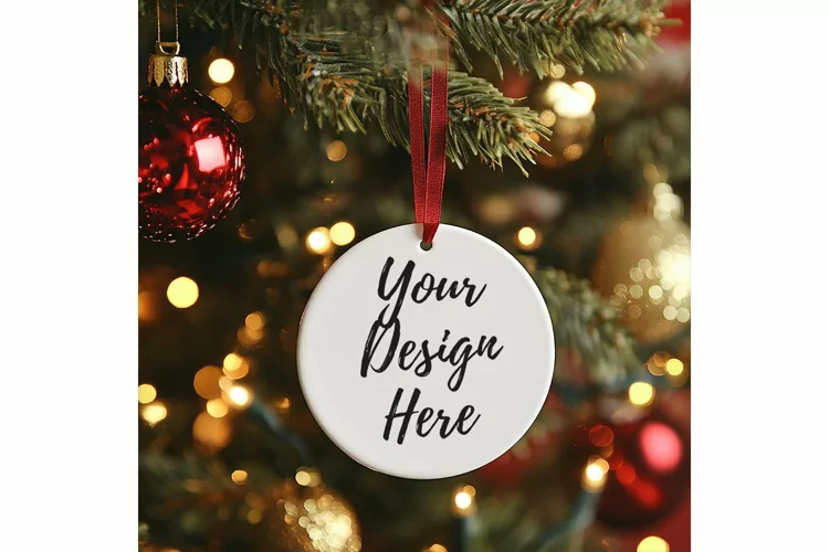 Christmas Ornament Mockup, Round White Ceramic Ornament_17