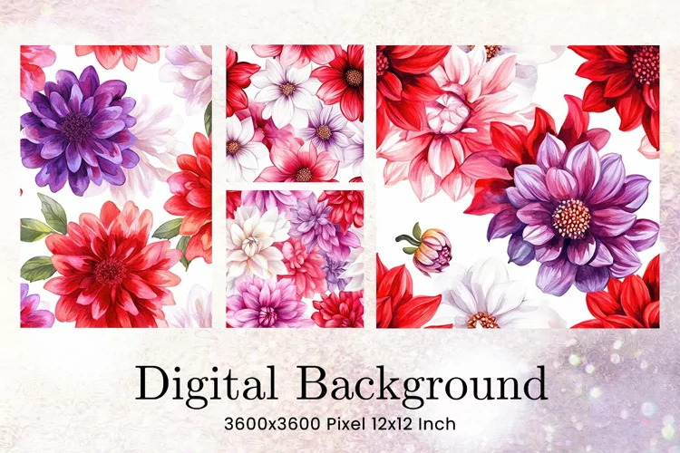 Flower Digital Paper Pack Flower Pattern Craft Supplies Background Paper Flower Digital Paper Flower Wallpaper Flower Seamless Pattern Wedding Backdrops Party Wallpaper
