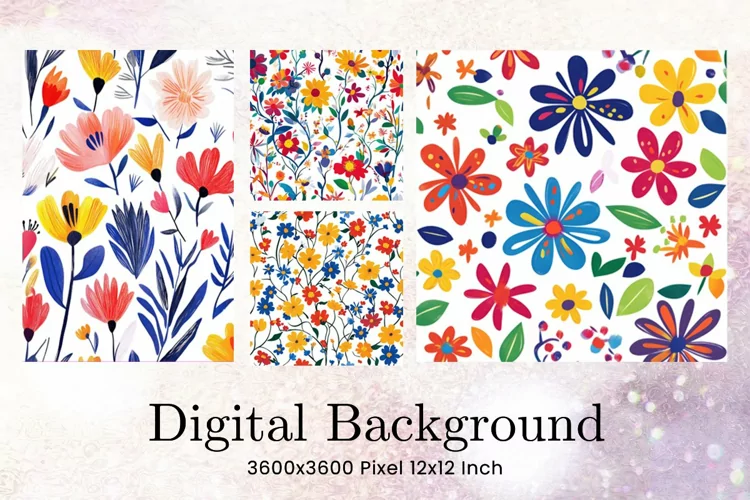 Flower Digital Paper Pack Flower Pattern Craft Supplies Background Paper Flower Digital Paper Flower Wallpaper Flower Seamless Pattern Wedding Backdrops Party Wallpaper