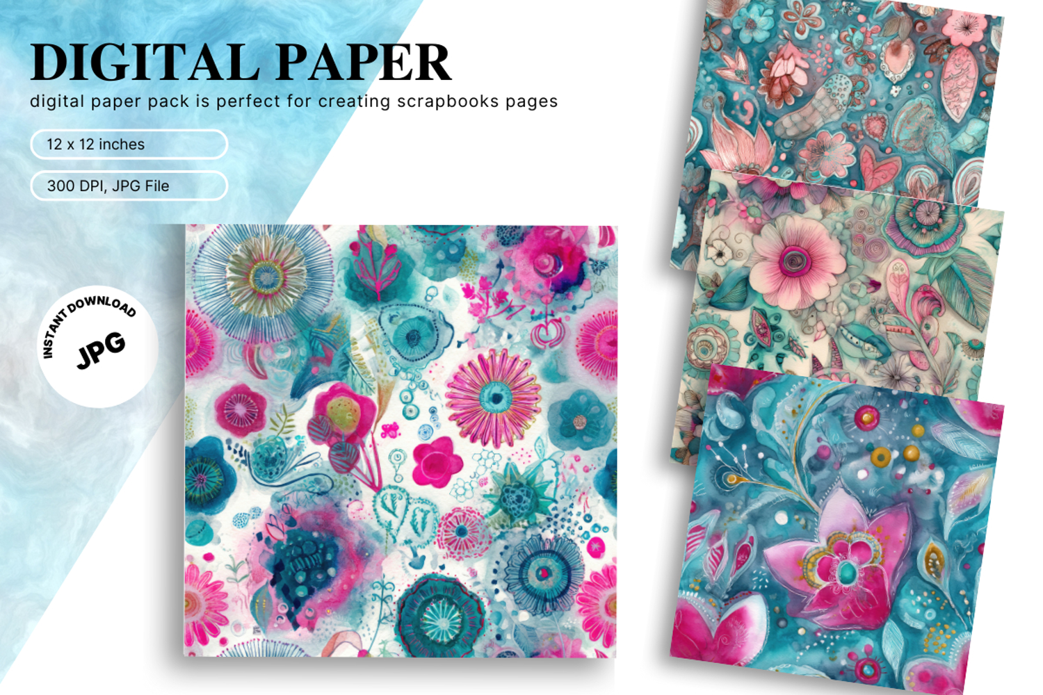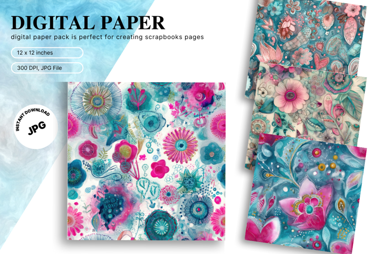 Flower Digital Paper Pack Flower Pattern Craft Supplies Background Paper Flower Digital Paper Flower Wallpaper Flower Seamless Pattern Wedding Backdrops Party Wallpaper