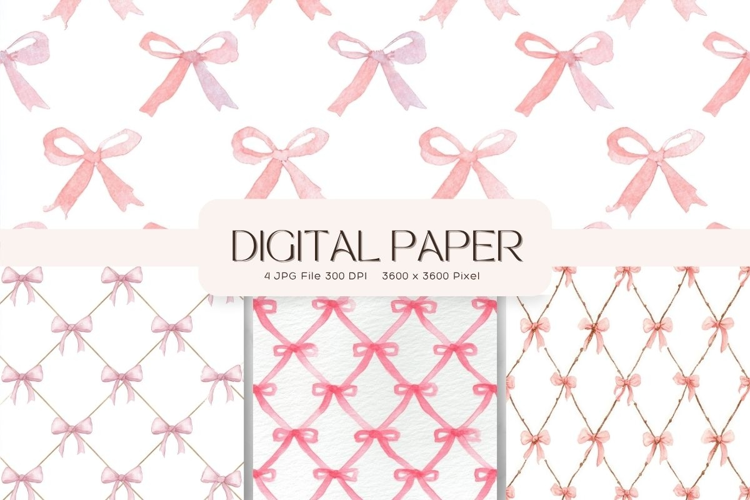 Bow Ribbon Background Bow Digital Paper Pattern Wallpaper205 example image 1
