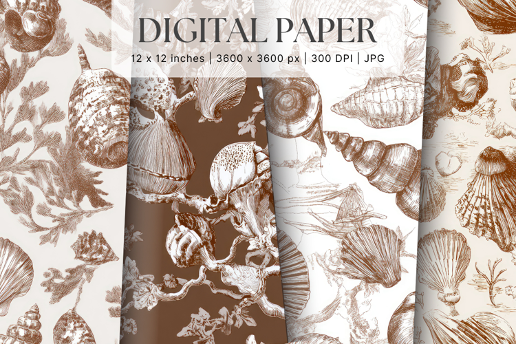 Digital Paper Pack Craft Supplies Background Paper Seashells Seashells Pattern Seashells Digital Paper Vintage Floral Pattern Chinoiserie Backgrounds Party Wallpaper Chinoiserie Seashells Pattern