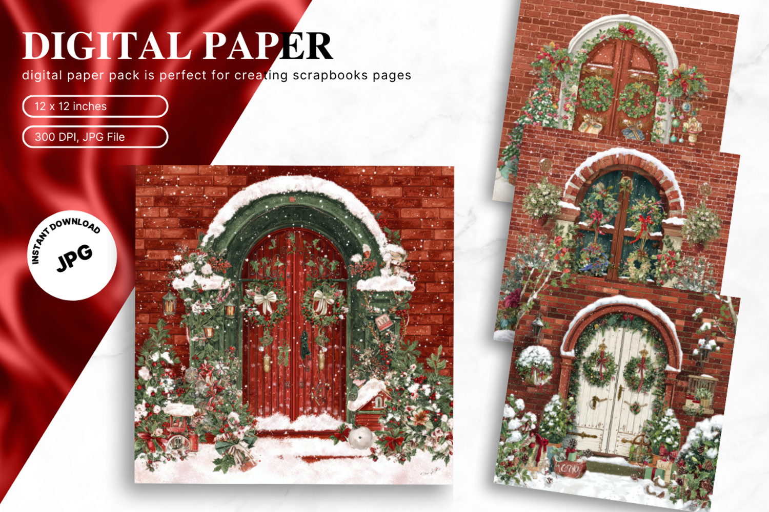 Christmas Background Digital Paper Pack Craft Supplies Background Paper Winter Snow Christmas Backdrop Christmas Winter Party Wallpaper Christmas Scene Background Winter Bakground