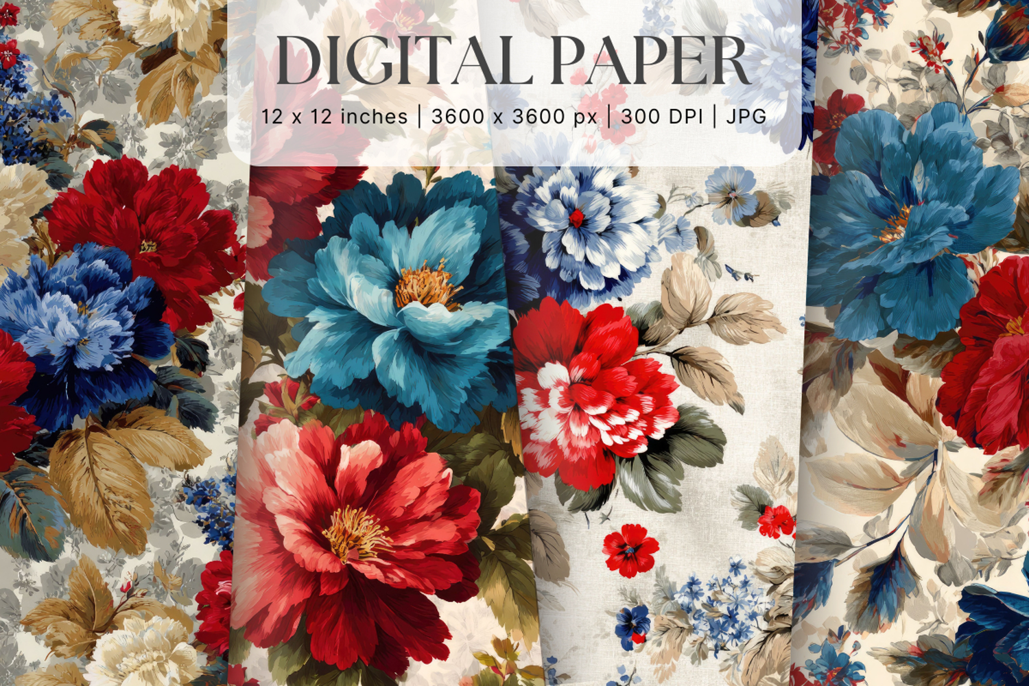 Flower Digital Paper Pack Flower Pattern Craft Supplies Background Paper Flower Digital Paper Flower Wallpaper Flower Seamless Pattern Wedding Backdrops Party Wallpaper