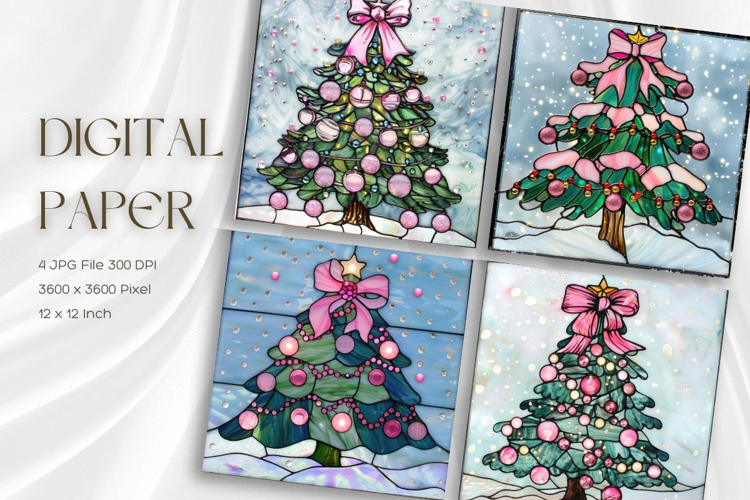 Christmas Tree Digital Paper Pack Craft Supplies Christmas Tree Background Stained Glass Background Stained Glass Texture Party Wallpaper Christmas Tree Stained Glass Window Background Flower Glass Texture