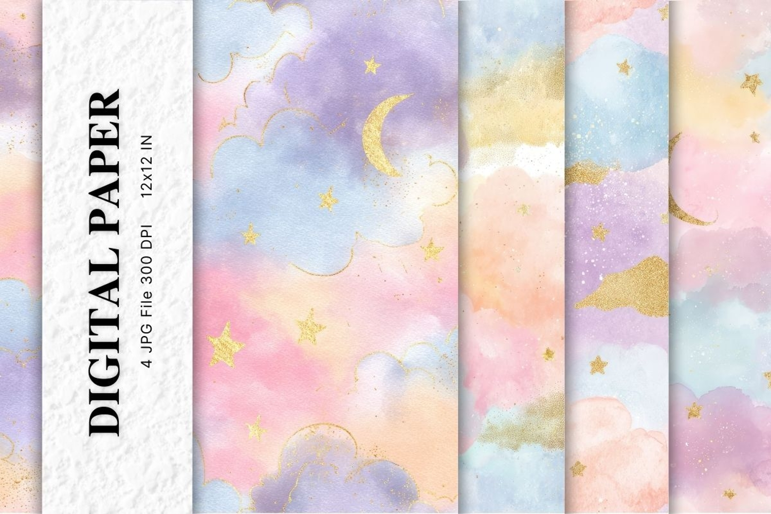 Digital Paper Pack Scrapbook Paper Craft Supplies Background Paper Gift Wrapping Watercolor Cloud Rainbow Cloud Rainbow Wallpaper Party Wallpaper Rainbow Sky Backdrop