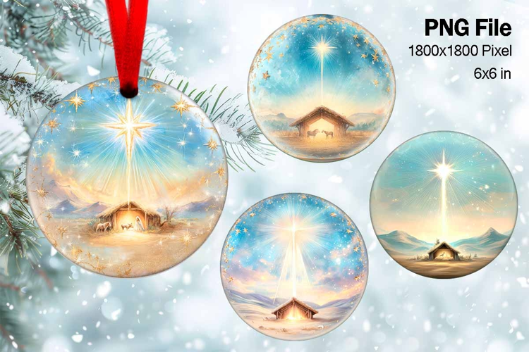 Nativity Scene Christmas Ornament Round Circle Jesus Baby_57 example image 1
