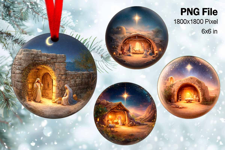 Nativity Scene Christmas Ornament Round Circle Jesus Baby_74 example image 1