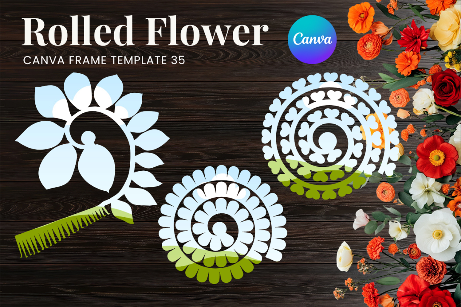 Rolled Flower Canva Frame Paper Flowers Canva Template_35